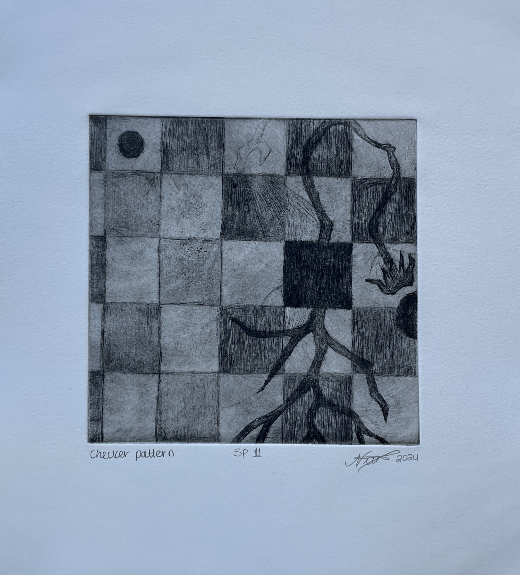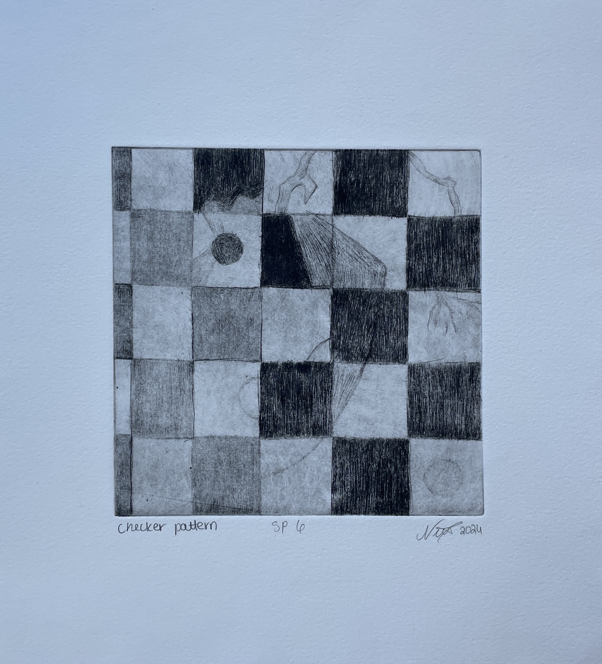 Checker Pattern, 6″ x 6″, Drypoint Intaglio, SP 1, 6, 11, 2024